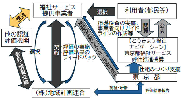 この制度は、福祉サービス利用者にとって質の高いサービスを選択できるよう、評価推進機構が個々の施設の評価結果を公表する制度です。